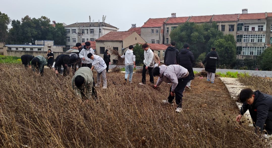 活动现场,团总支学生会成员率先垂范、踊跃在前。各部门齐心协力,分工有序,配合默契。面对丛生杂草,同学们不惧琐碎、不辞辛劳,俯身弯腰,徒手清拔,不留死角,将枯枝杂物一一归置。劳动中,大家始终洋溢着团结互助、无私奉献的热情,在挥洒汗水中妆点校园。经过共同努力,原本杂草遍地的场地变得井然有序,校园风貌为之一新。
