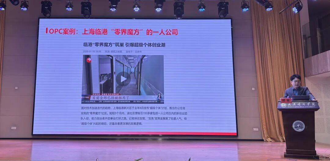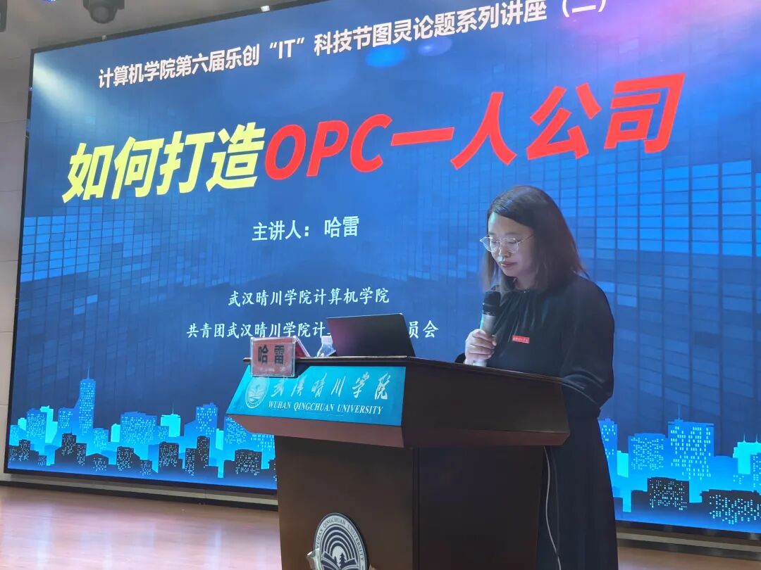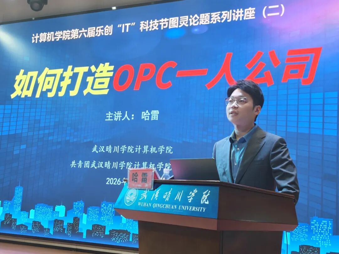 为抢抓人工智能发展机遇,培育本土科创新势力,激发全社会创新创业活力,推动科技创新和产业创新深度融合,助力武汉建设国家科技创新中心,结合武汉市人工智能OPC创新发展十大举措,我院于2026年4月7日举办了“AI赋能·OPC一人公司打造”专题讲座,为青年学子搭建前沿创业学习交流平台。