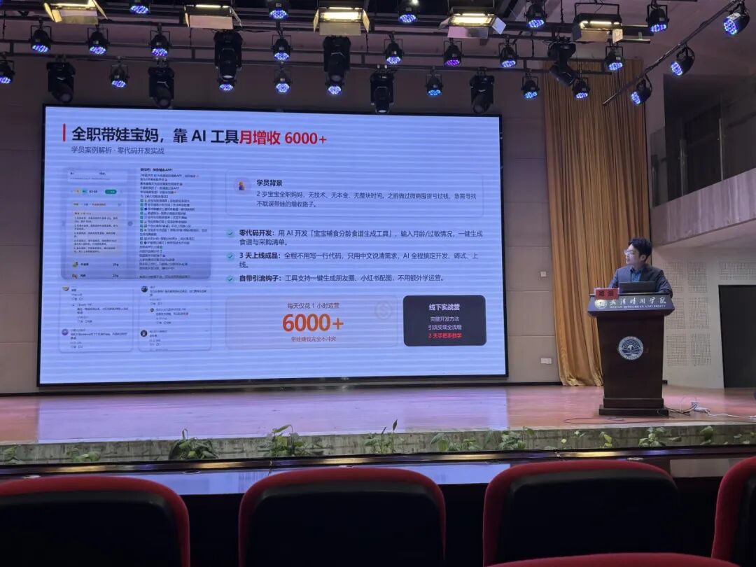 本次讲座中,哈雷讲师不仅分享了AI编程多元应用案例,还在AI编程实操教学环节,为学生详细演示了扣子平台的操作流程。